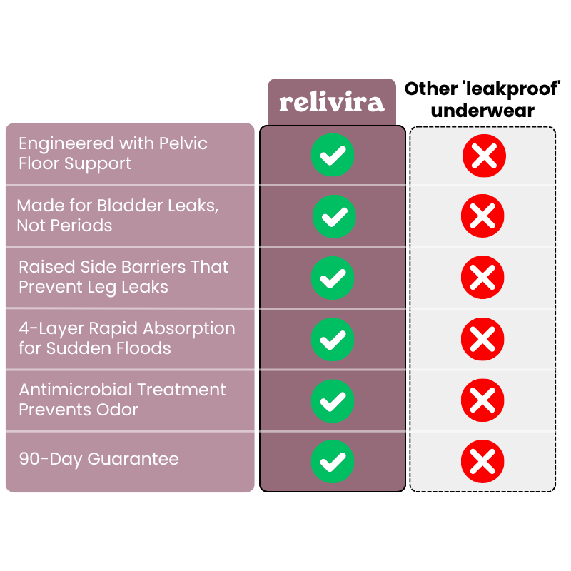 Relivira is engineered for women experiencing all four types of incontinence: